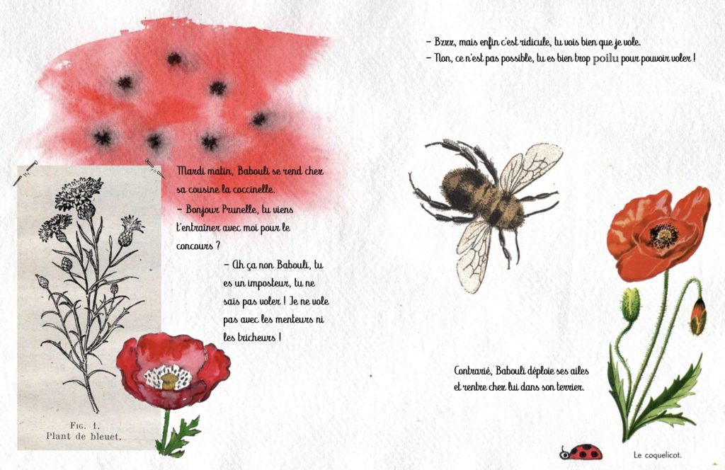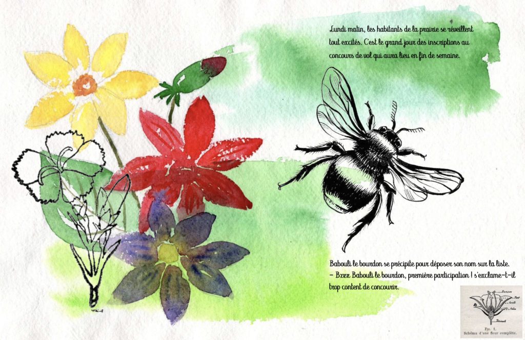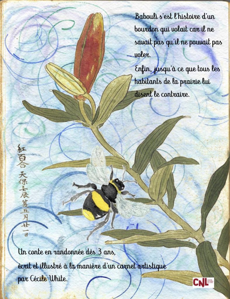 J’ai obtenu une bourse du Centre National du Livre pour la création de cet album aussi j’aimerai maintenant lui trouver un éditeur/éditrice pour que mon bourdon s’envole réellement !